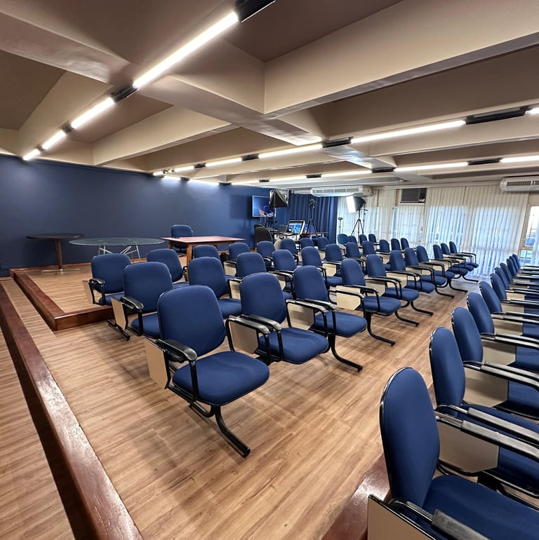 Auditório 360 na Torre A do Pátio Brasil Shopping é ideal para eventos de sucesso. Com 165 m², capacidade para 120 pessoas, oferece uma estrutura completa para uma experiência única e memorável.
